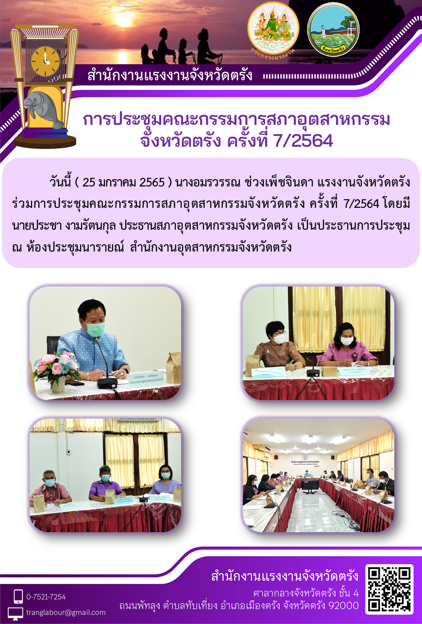 แรงงานจังหวัดตรัง ร่วมการประชุมคณะกรรมการสภาอุตสาหกรรมจังหวัดตรัง ครั้งที่ 7/2564