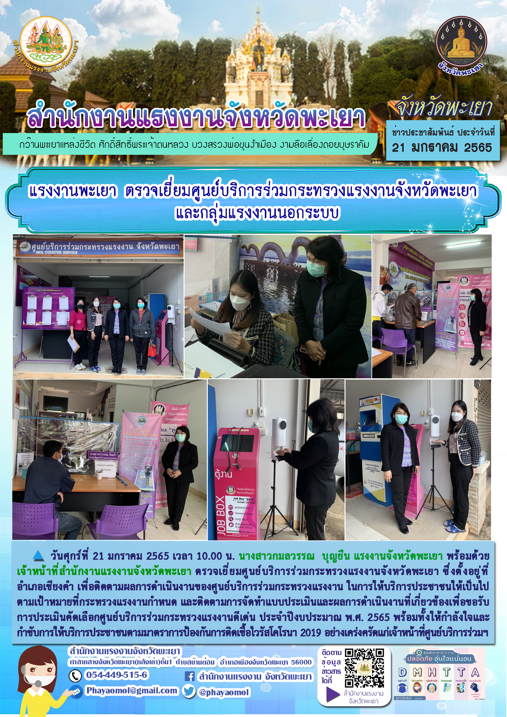 แรงงานพะเยา ตรวจเยี่ยมศูนย์บริการร่วมกระทรวงแรงงานจังหวัดพะเยา และกลุ่มแรงงานนอกระบบ