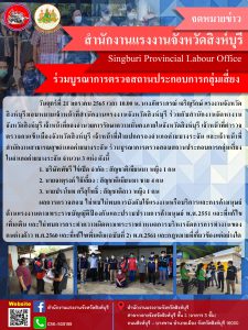 สำนักงานแรงงานจังหวัดสิงห์บุรีร่วมบูรณาการตรวจสถานประกอบการกลุ่มเสี่ยง