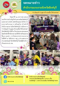 เเรงงานจังหวัดสิงห์บุรีร่วมโครงการ”หน่วยบำบัดทุกข์ บำรุงสุข สร้างรอยยิ้มให้ประชาชน”จังหวัดสิงห์บุรีประจำปีงบประมาณพ.ศ.2565ประจำเดือนมกราคม2565