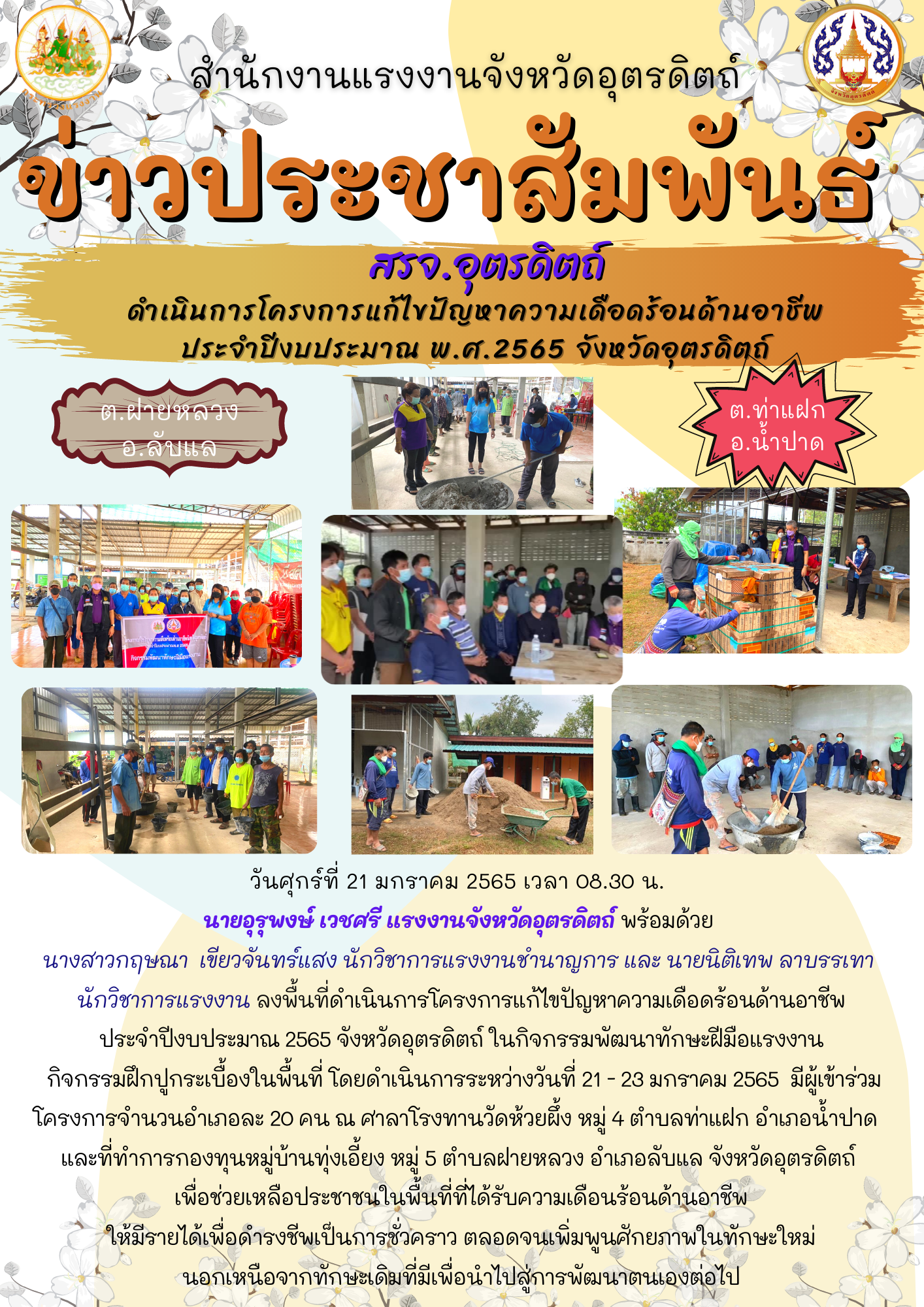 สรจ.อุตรดิตถ์ ลงพื้นที่ดำเนินการโครงการแก้ไขปัญหาความเดือดร้อนด้านอาชีพ ประจำปีงบประมาณ 2565