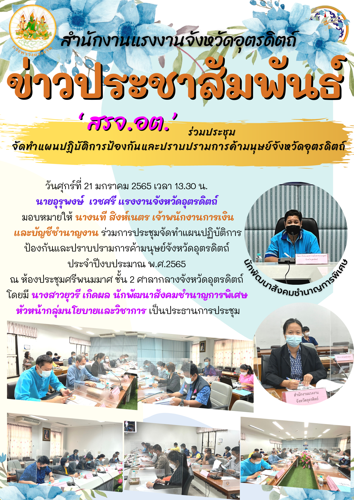 สรจ.อต. ร่วมการประชุมจัดทำแผนปฏิบัติการป้องกันและปราบปรามการค้ามนุษย์จังหวัดอุตรดิตถ์ ประจำปีงบประมาณ พ.ศ.2565