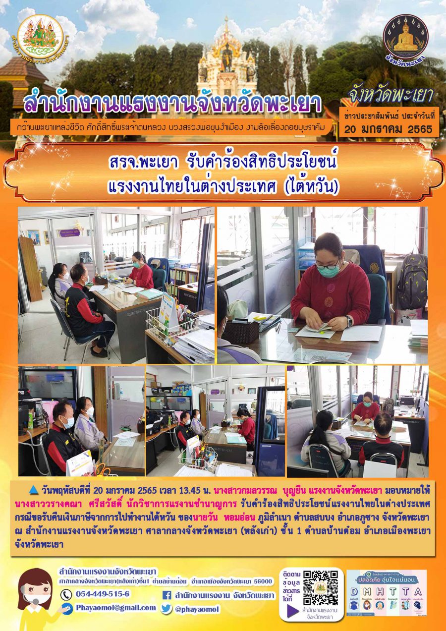 สรจ.พะเยา รับคำร้องสิทธิประโยชน์แรงงานไทยในต่างประเทศ (ไต้หวัน)