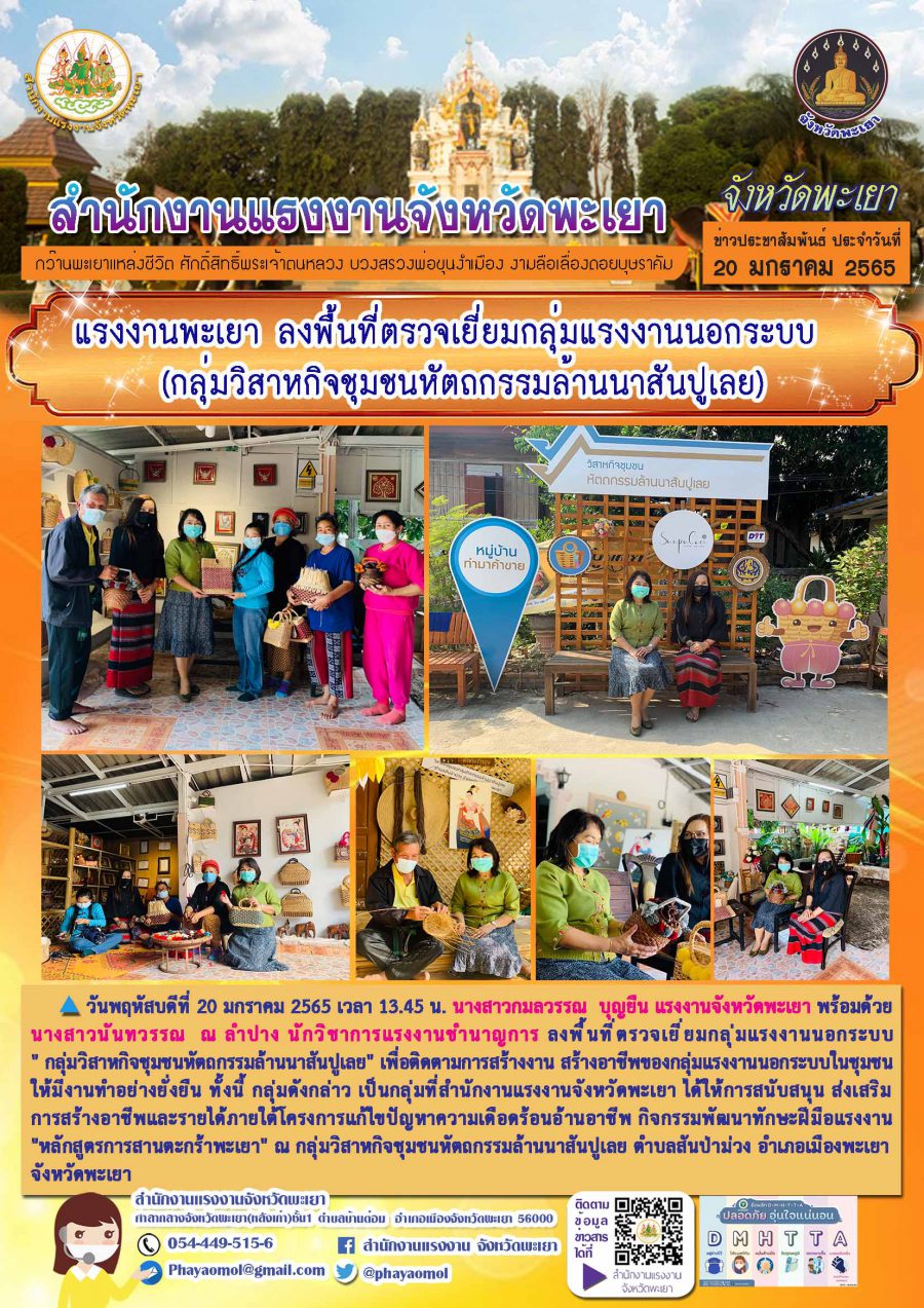 แรงงานพะเยา ลงพื้นที่ตรวจเยี่ยมกลุ่มแรงงานนอกระบบ (กลุ่มวิสาหกิจชุมชนหัตถกรรมล้านนาสันปูเลย)