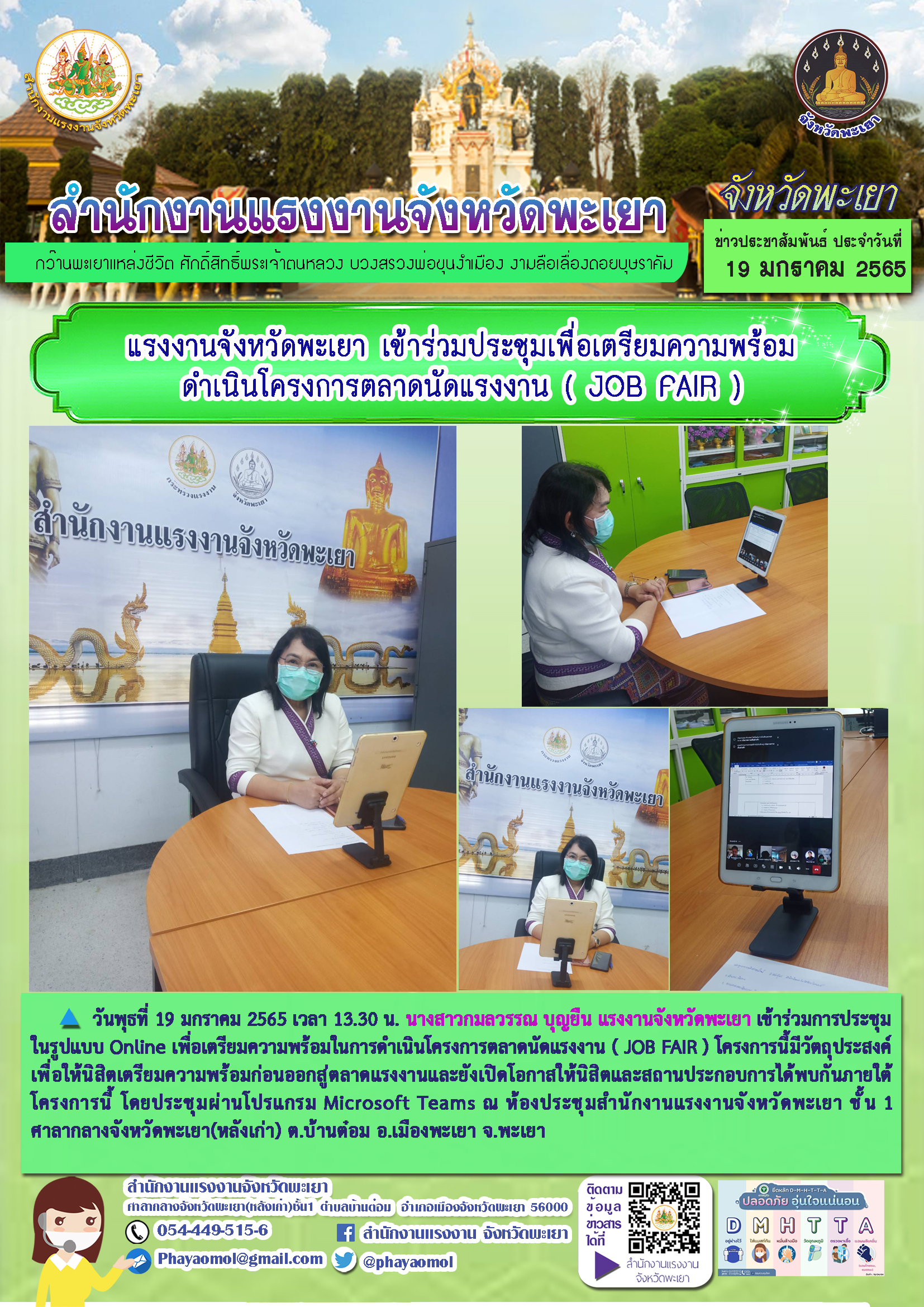 แรงงานจังหวัดพะเยา เข้าร่วมประชุมเพื่อเตรียมความพร้อมดำเนินโครงการตลาดนัดแรงงาน ( JOB FAIR )