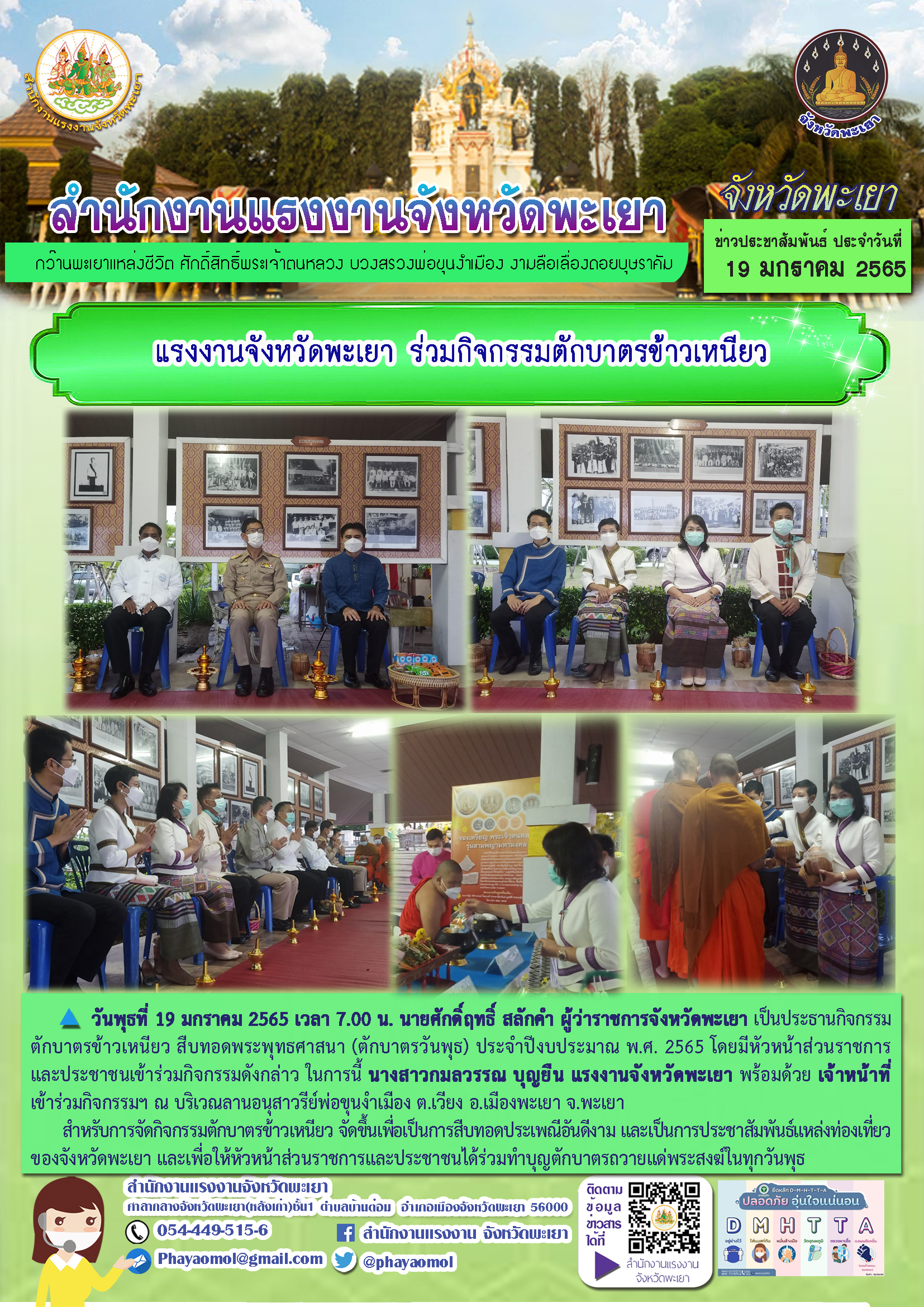 แรงงานจังหวัดพะเยา ร่วมกิจกรรมตักบาตรข้าวเหนียว