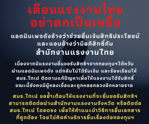 ย้ำเตือนแรงงานไทยอย่าตกเป็นเหยื่อมิจฉาชีพหลอกดำเนินการยื่นขอสิทธิประโยชน์ไต้หวัน