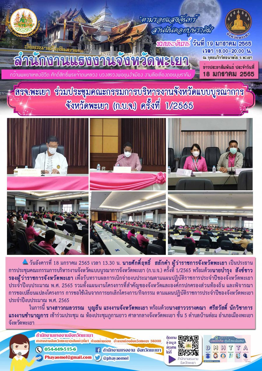 สรจ.พะเยา ร่วมประชุมคณะกรรมการบริหารงานจังหวัดแบบบูรณาการจังหวัดพะเยา (ก.บ.จ.) ครั้งที่ 1/2565