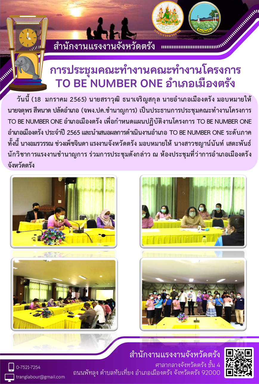 สรจ.ตรัง ร่วมการประชุมคณะทำงานโครงการ TO BE NUMBER ONE อำเภอเมืองตรัง