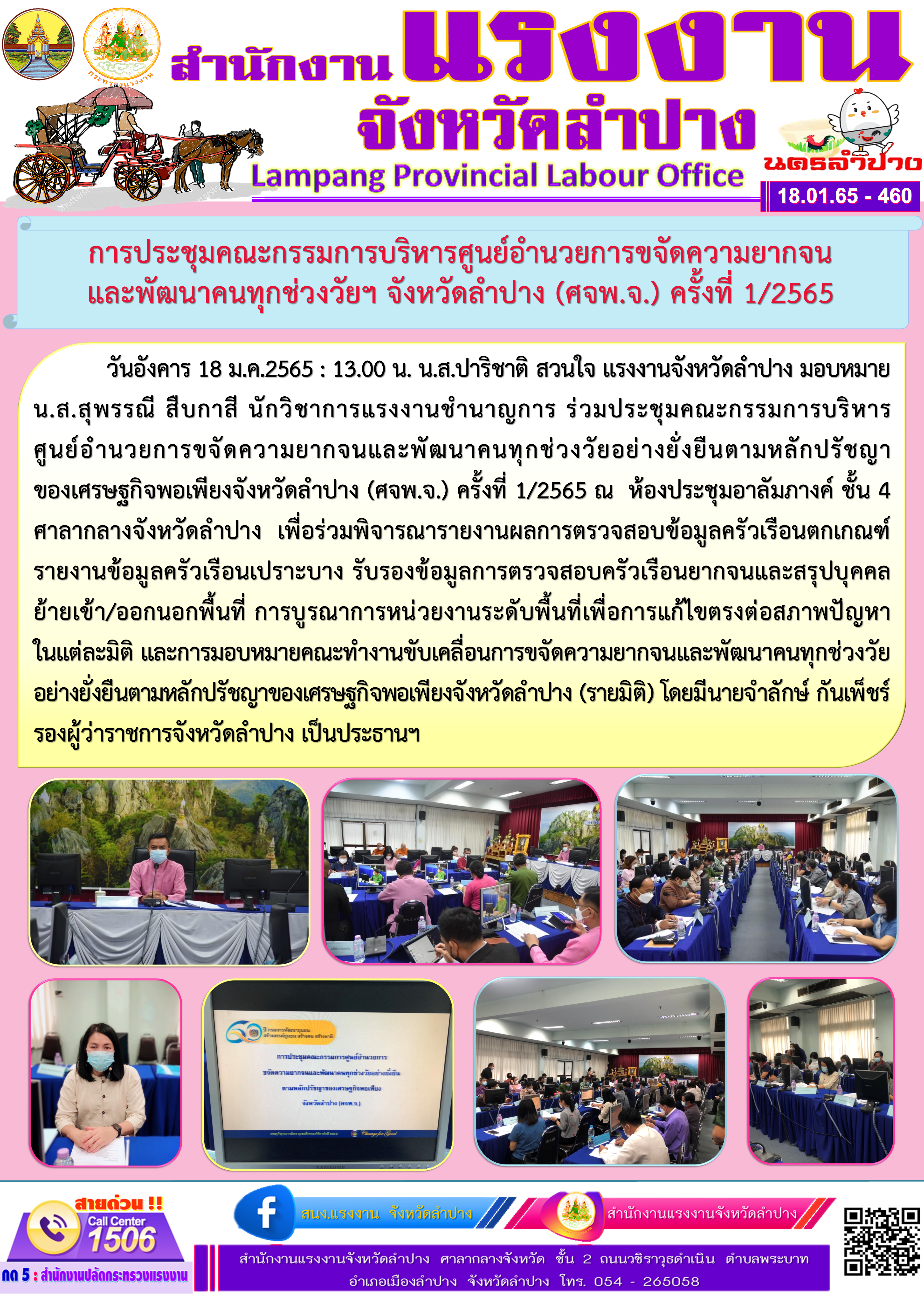 การประชุมคณะกรรมการบริหารศูนย์อำนวยการขจัดความยากจนและพัฒนาคนทุกช่วงวัยฯ จังหวัดลำปาง (ศจพ.จ.) ครั้งที่ 1/2565