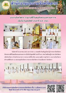 แรงงานจังหวัดสกลนคร ร่วมพิธีทำบุญตักบาตร ทำวัตรสวดมนต์เช้า งานเทศกาลนมัสการองค์พระธาตุเชิงชุม และหลวงพ่อองค์แสน ประจำปีงบประมาณ 2565
