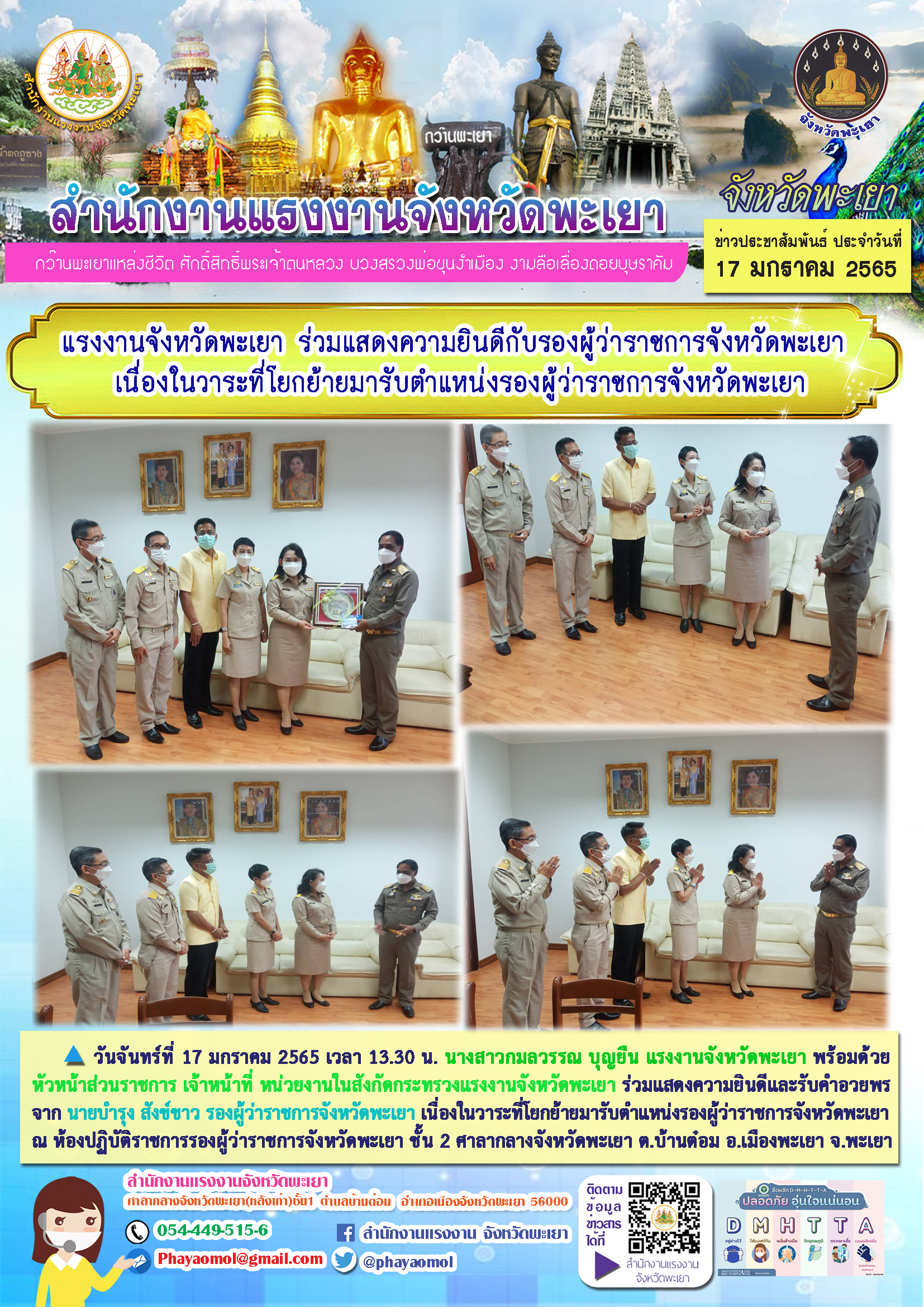 แรงงานจังหวัดพะเยา ร่วมแสดงความยินดีกับรองผู้ว่าราชการจังหวัดพะเยา เนื่องในวาระที่โยกย้ายมารับตำแหน่งรองผู้ว่าราชการจังหวัดพะเยา