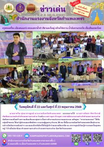 สำนักงานแรงงานจังหวัดกำแพงเพชร โดยบัณฑิตแรงงานประจำอำเภอพรานกระต่าย จัดกิจกรรมเสริมสร้างความเข้มแข็งและสุขภาวะในการทำงานแก่แรงงานนอกระบบ