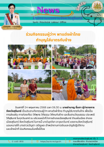 แรงงานจังหวัดสุรินทร์ ร่วมกิจกรรมผู้ว่าฯ พาแต่งผ้าไทย ทำบุญใส่บาตรกับช้าง