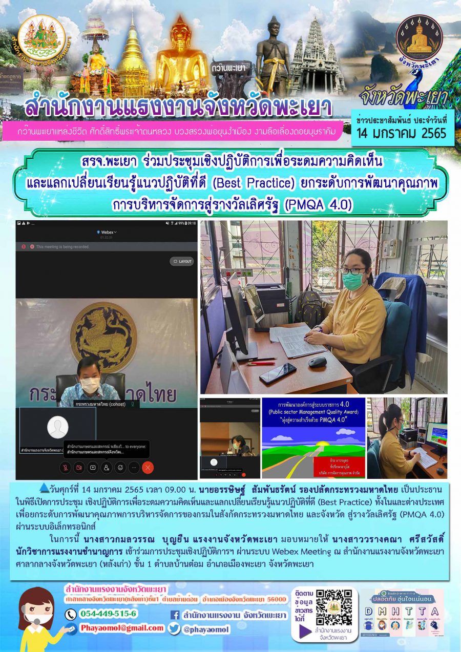 สรจ.พะเยา ร่วมประชุมเชิงปฏิบัติการเพื่อระดมความคิดเห็นและแลกเปลี่ยนเรียนรู้แนวปฏิบัติที่ดี (Best Practice) ยกระดับการพัฒนาคุณภาพการบริหารจัดการสู่รางวัลเลิศรัฐ (PMQA 4.0)