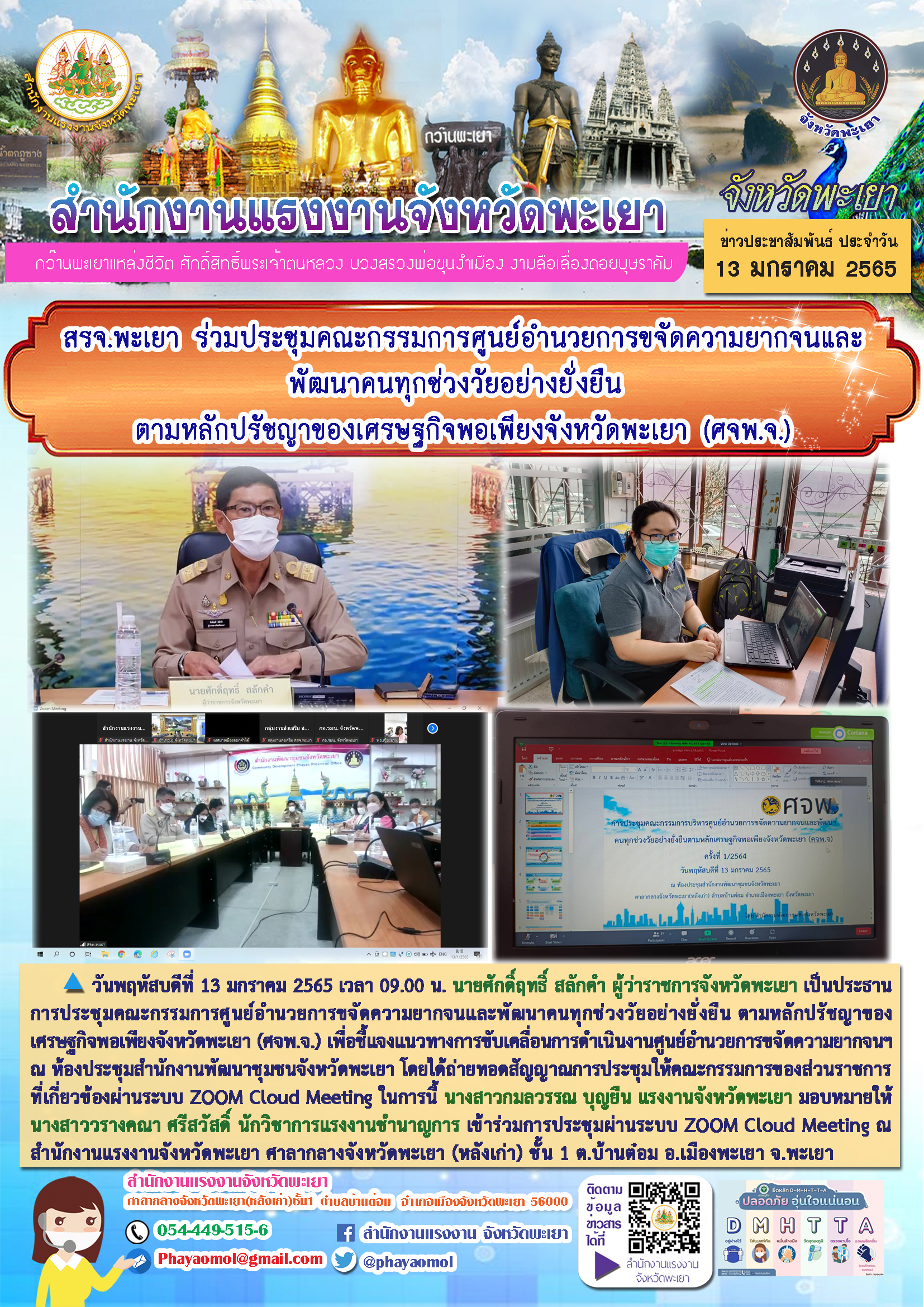 สรจ.พะเยา ร่วมประชุมคณะกรรมการศูนย์อำนวยการขจัดความยากจนและพัฒนาคนทุกช่วงวัยอย่างยั่งยืน ตามหลักปรัชญาของเศรษฐกิจพอเพียงจังหวัดพะเยา