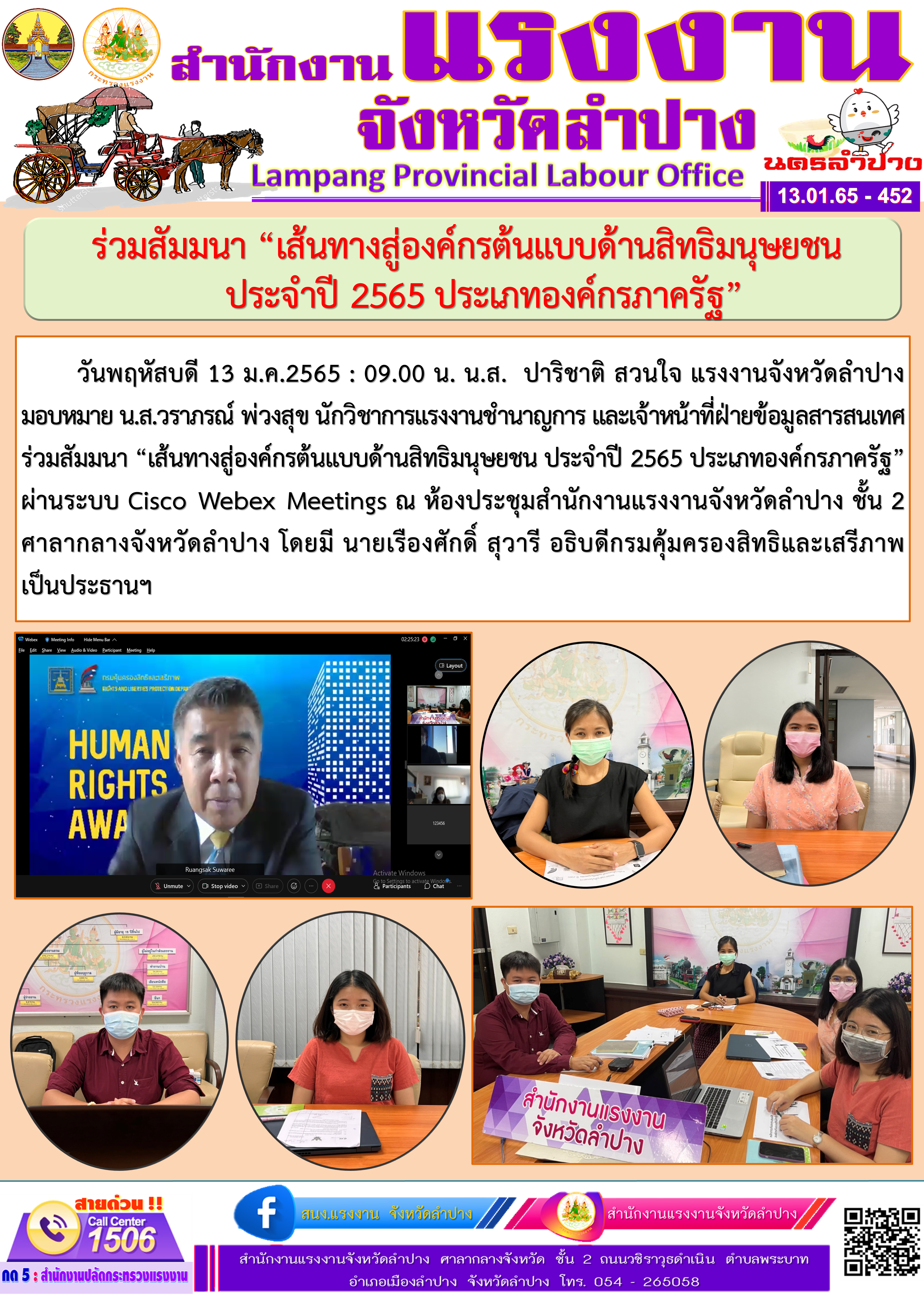สรจ.ลำปาง ร่วมสัมมนา “เส้นทางสู่องค์กรต้นแบบด้านสิทธิมนุษยชน ประจำปี 2565 ประเภทองค์กรภาครัฐ”