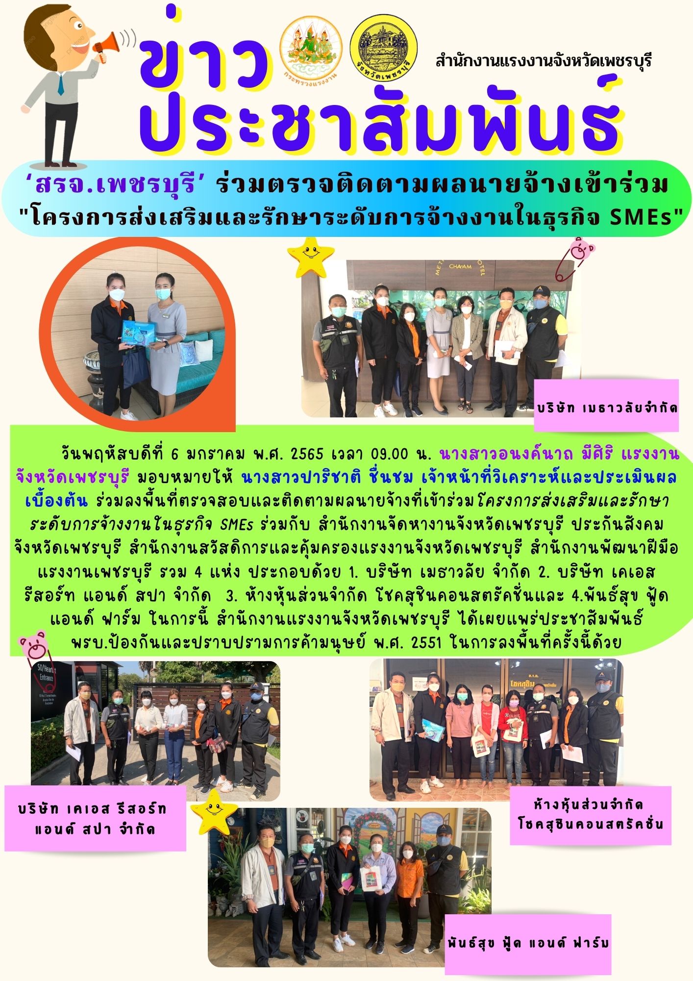 สรจ.เพชรบุรี ร่วมตรวจติดตามผลนายจ้างเข้าร่วมโครงการส่งเสริมและรักษาระดับการจ้างงานในธุรกิจ SMEs