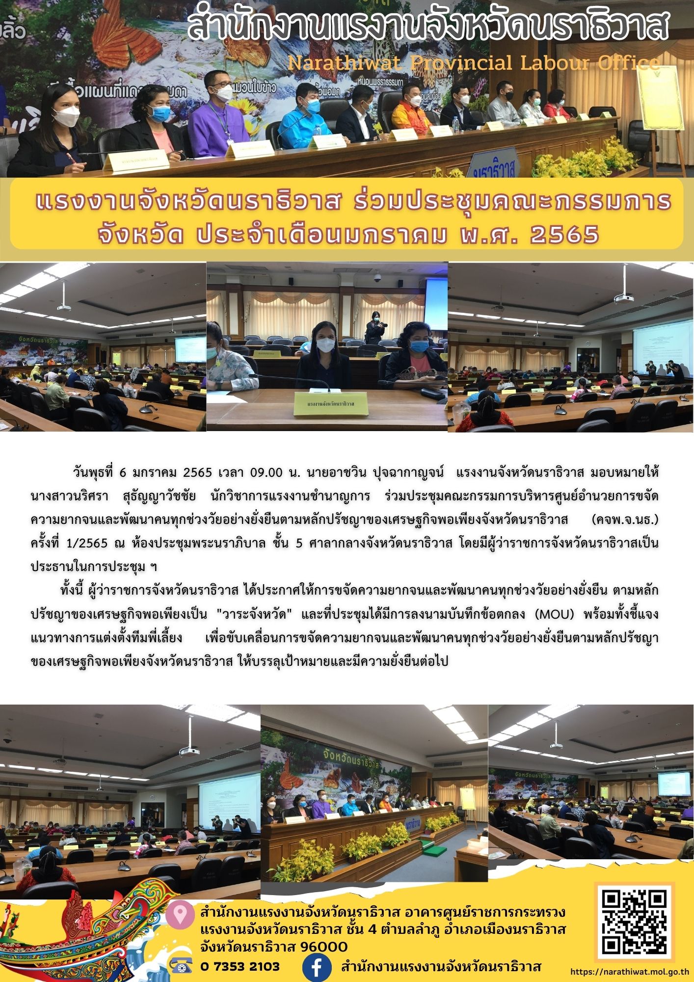 แรงงานจังหวัดนราธิวาส ร่วมประชุมคณะกรรมการจังหวัด ประจำเดือนมกราคม พ.ศ. 2565