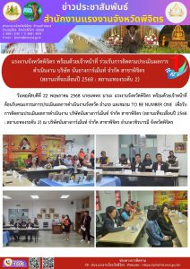 แรงงานจังหวัดพิจิตร พร้อมด้วยเจ้าหน้าที่ ร่วมรับการติดตามประเมินผลการดำเนินงาน บริษัท นันยางการ์เม้นท์ จำกัด สาขาพิจิตร (สถานะที่จะเลื่อนปี 2568 : สถานะทองระดับ 2)