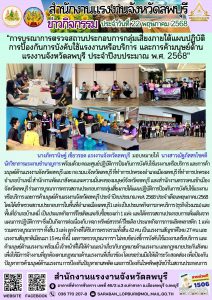 การบูรณาการตรวจสถานประกอบการกลุ่มเสี่ยงภายใต้แผนปฏิบัติการป้องกันการบังคับใช้แรงงานหรือบริการ และการค้ามนุษย์ด้านแรงงานจังหวัดลพบุรี ประจำปีงบประมาณ พ.ศ. 2568