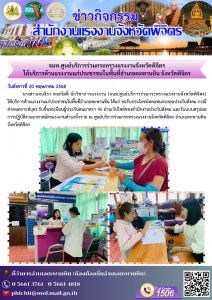บัณฑิตแรงงาน ประจำอำเภอพรานกระต่าย ประชาสัมพันธ์ภารกิจของหน่วยงานในสังกัดกระทรวงแรงงาน