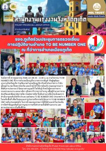 ปลัดกระทรวงแรงงาน มอบ หัวหน้าผู้ตรวจฯ ตรวจเยี่ยมการปฏิบัติงานและเก็บคะแนนการประกวดทูบีนัมเบอร์วัน ระดับพื้นที่ ประจำปี 2568 จ.ภูเก็ต