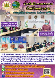 แรงงานจังหวัดหนองคาย ร่วมประชุมคณะอนุกรรมการศูนย์ปฏิบัติการป้องกันและปราบปรามการค้ามนุษย์จังหวัดหนองคาย
