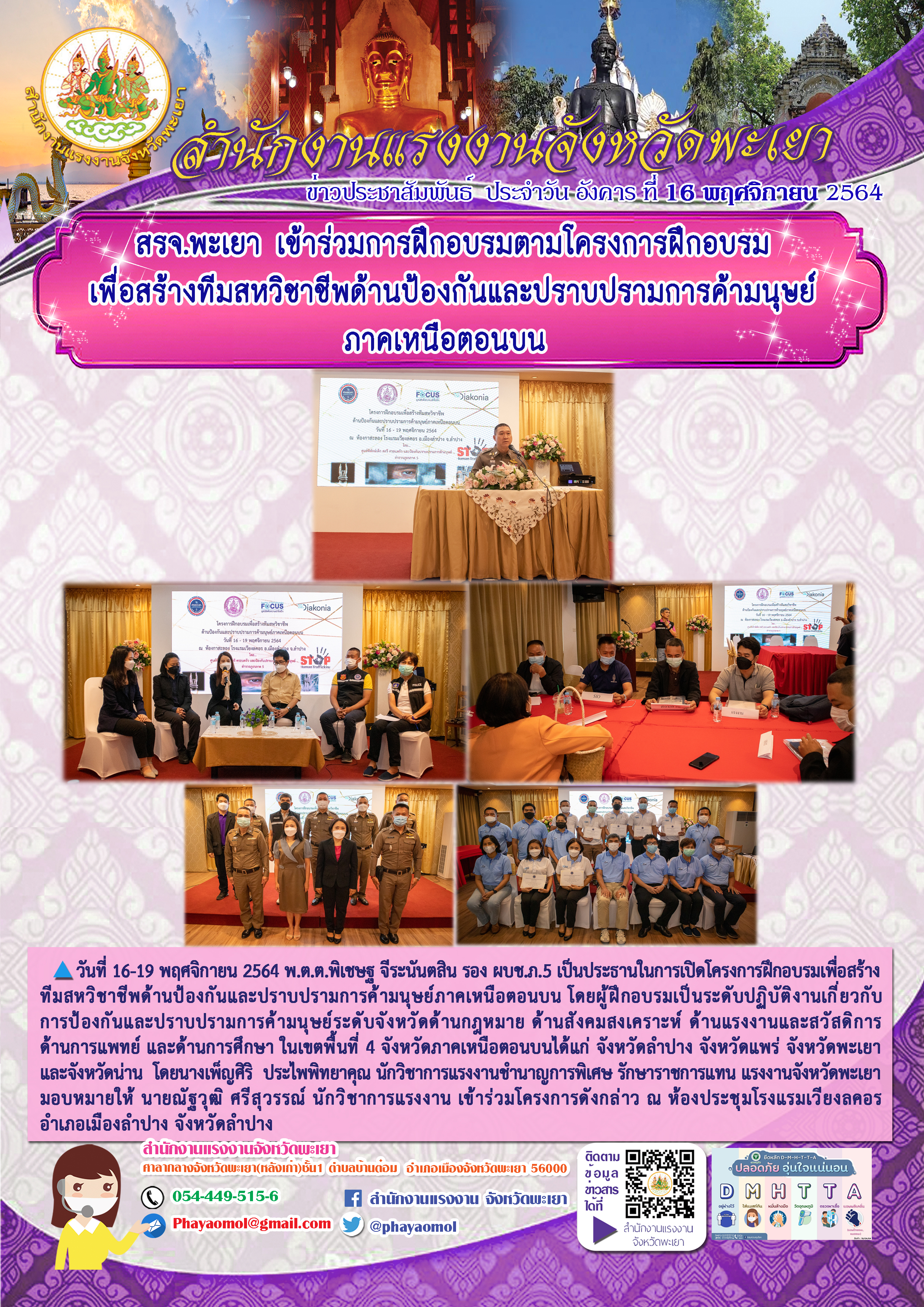 สรจ.พะเยา เข้าร่วมการฝึกอบรมตามโครงการฝึกอบรมเพื่อสร้างทีมสหวิชาชีพด้านป้องกันและปราบปรามการค้ามนุษย์ภาคเหนือตอนบน