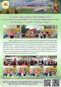 แรงงานจังหวัดตาก เปิดโครงการส่งเสริมคุณภาพชีวิต เพื่อแก้ไขปัญหาความยากจน กิจกรรม พัฒนาศักยภาพแรงงานเพิ่มทักษะฝีมือในการประกอบอาชีพรองรับการฟื้นฟูเศรษฐกิจท้องถิ่นและชุมชน ประจำปีงบประมาณ พ.ศ. 2565 หลักสูตร การทำขนมไทยและการถนอมอาหาร