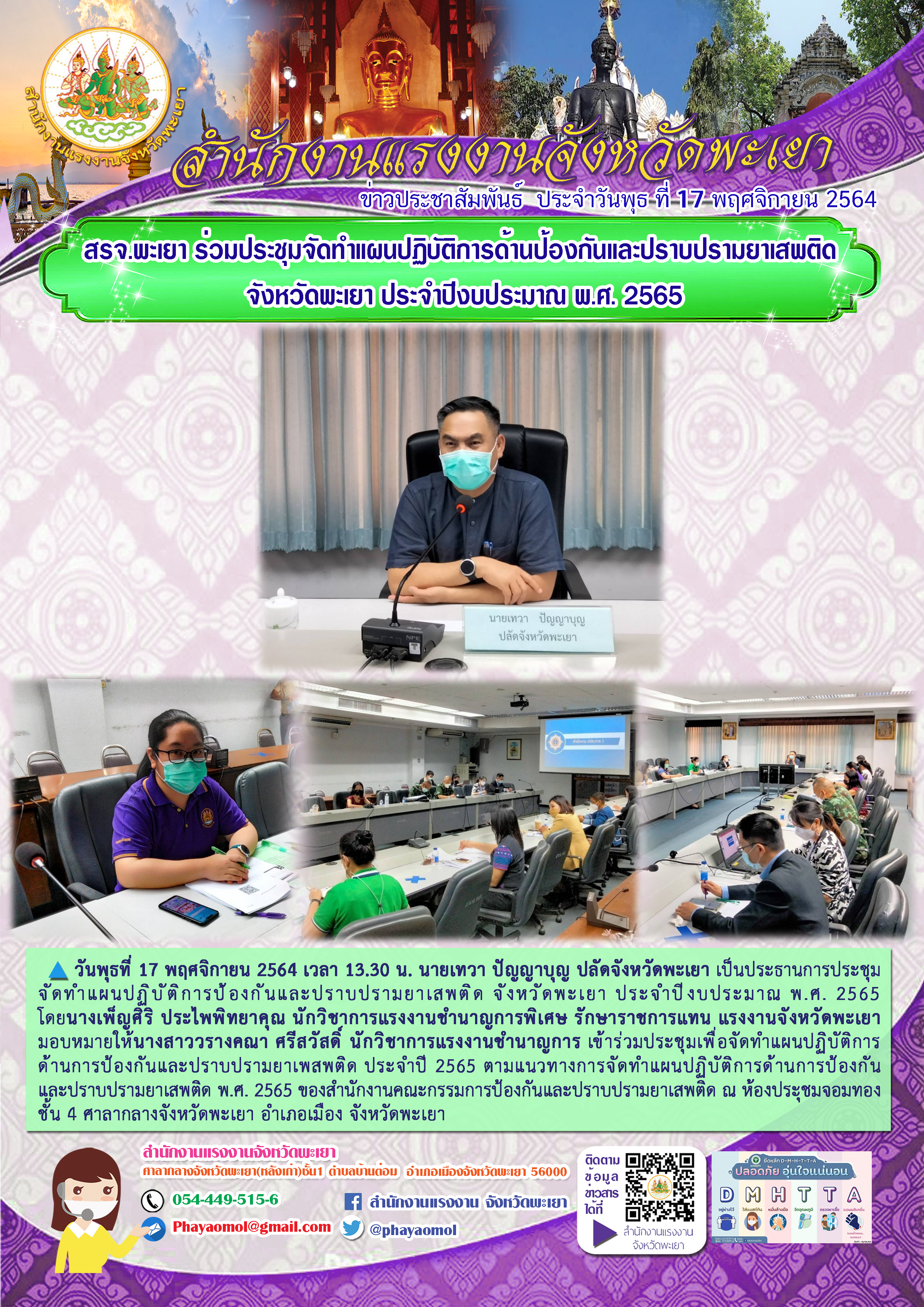สรจ.พะเยา ร่วมประชุมจัดทำแผนปฏิบัติการด้านป้องกันและปราบปรามยาเสพติดจังหวัดพะเยา ประจำปีงบประมาณ 2565