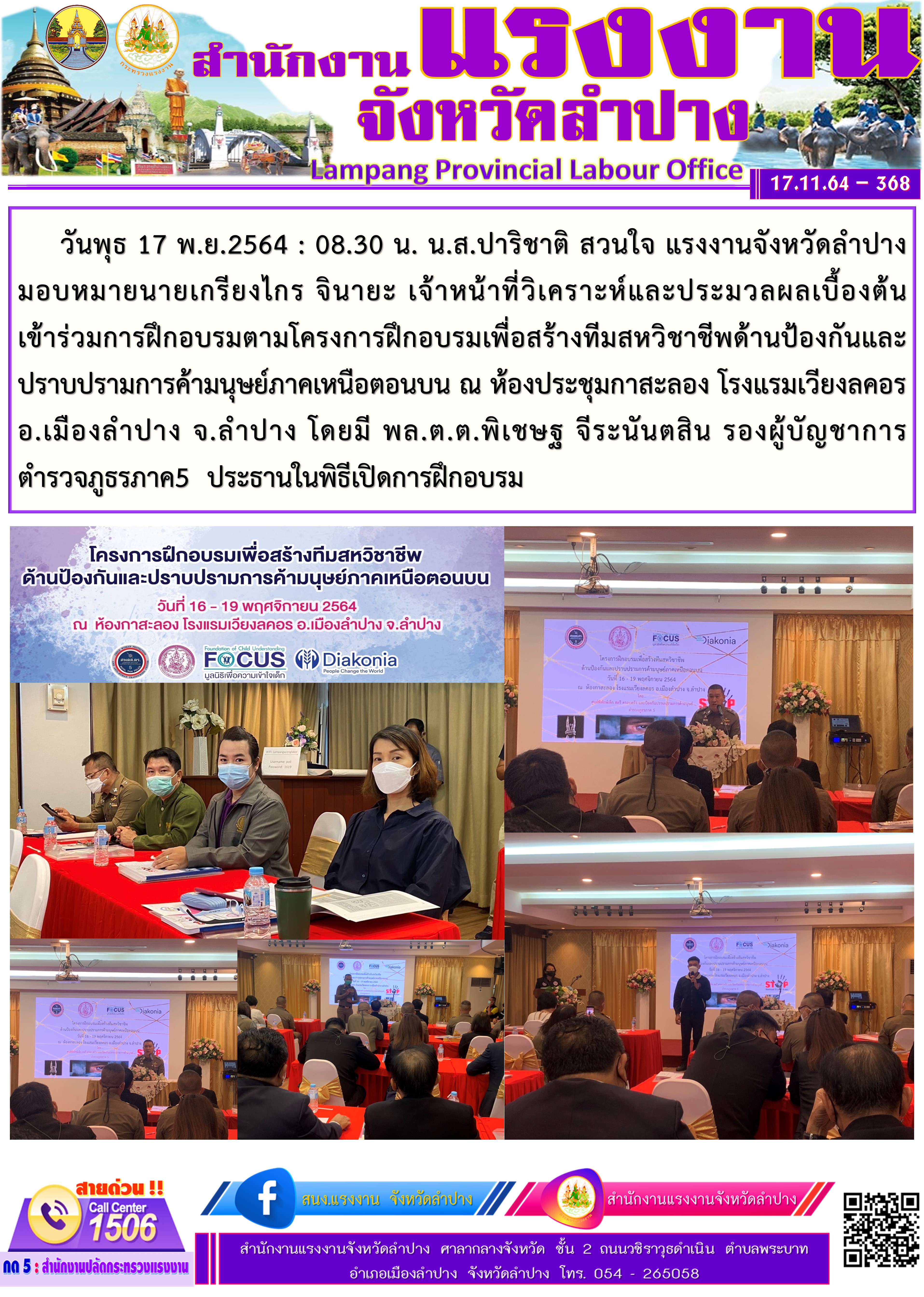 สรจ.ลำปาง ร่วมการฝึกอบรมตามโครงการฝึกอบรมเพื่อสร้างทีมสหวิชาชีพด้านป้องกันและปราบปรามการค้ามนุษย์ภาคเหนือตอนบน วันที่ 2