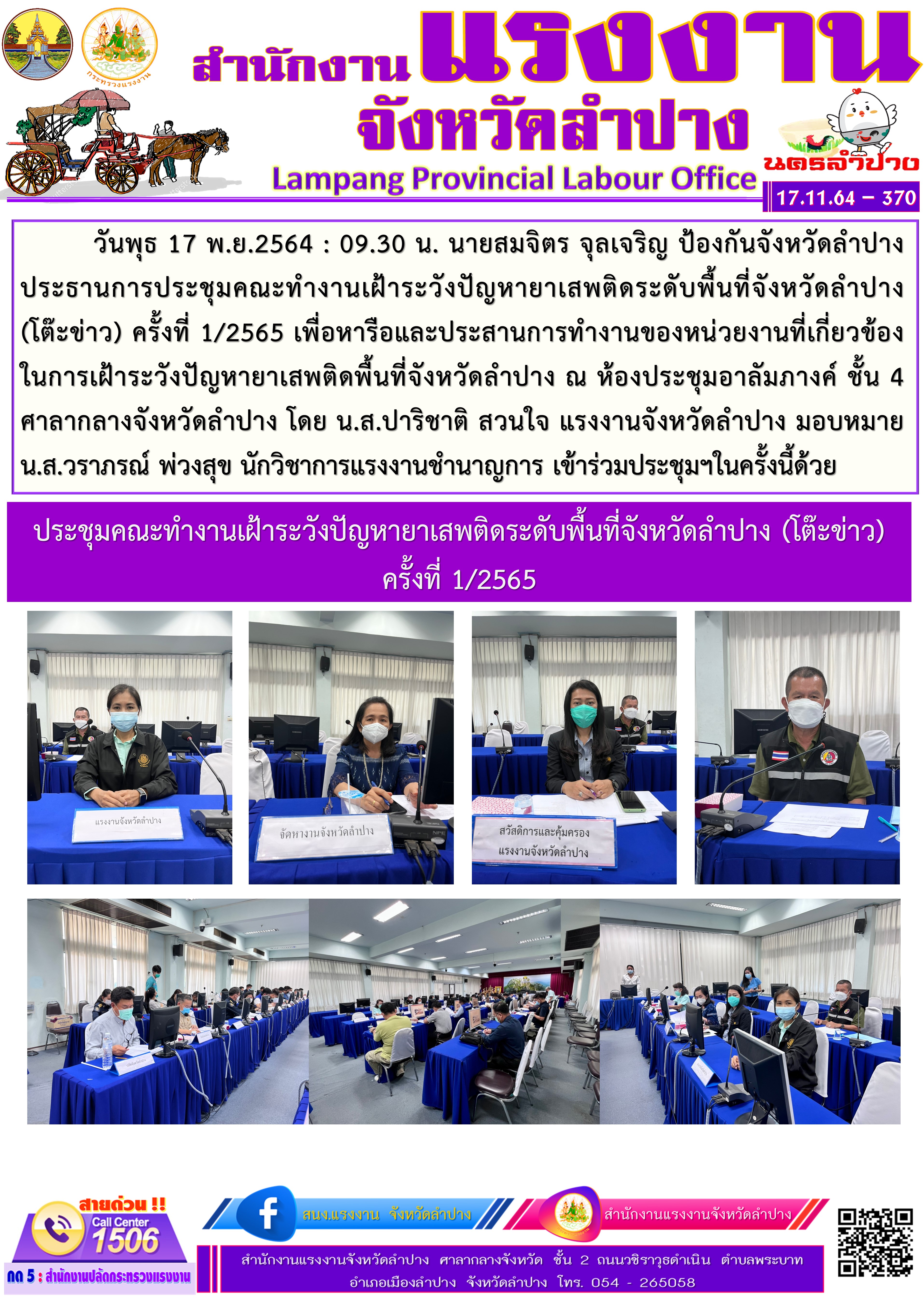 สรจ.ลำปาง ร่วมประชุมคณะทำงานเฝ้าระวังปัญหายาเสพติดระดับพื้นที่จังหวัดลำปาง (โต๊ะข่าว) ครั้งที่ 1/2565