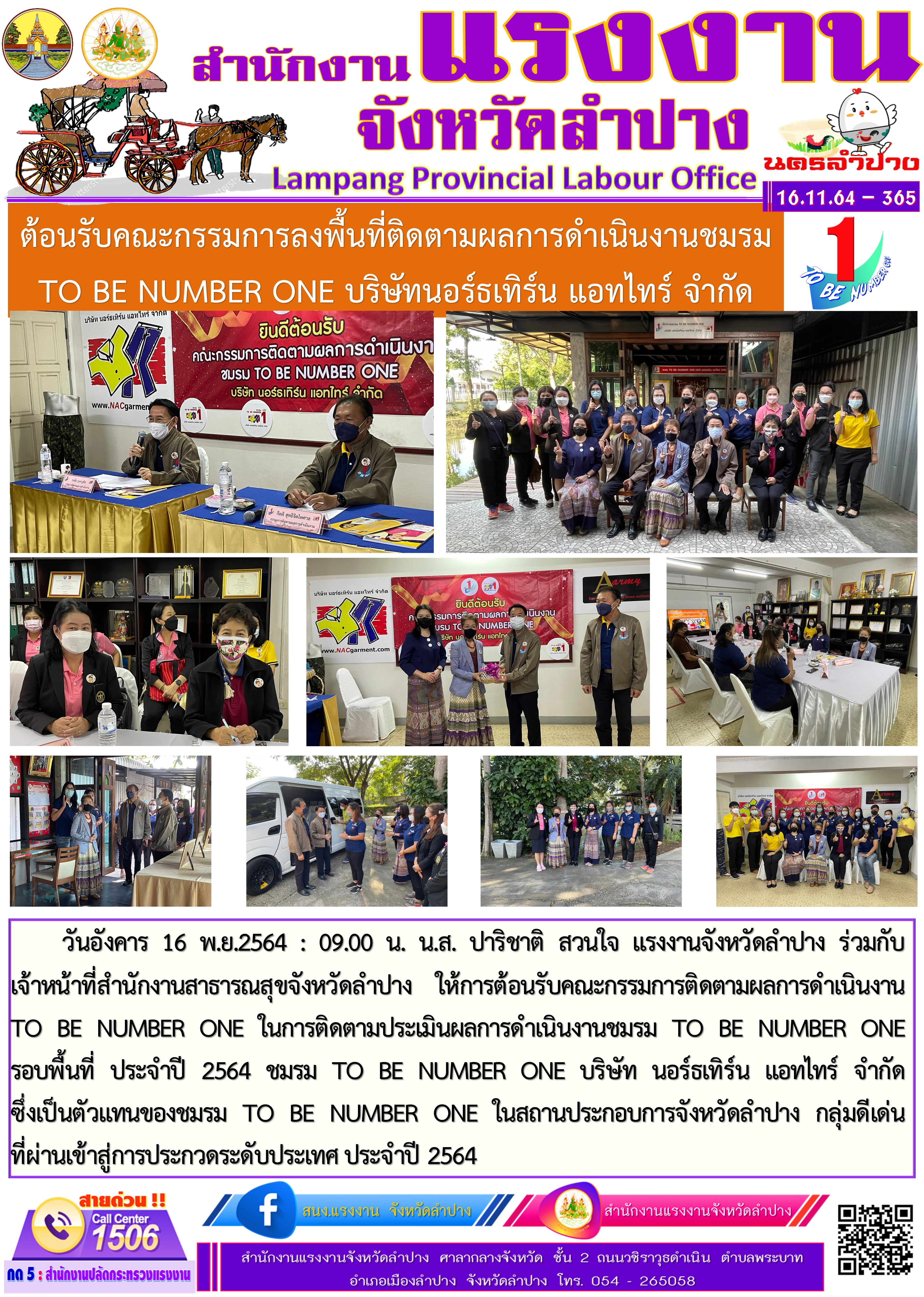 ต้อนรับคณะกรรมการลงพื้นที่ติดตามผลการดำเนินงานชมรม TO BE NUMBER ONE บริษัทนอร์ธเทิร์น แอทไทร์ จำกัด