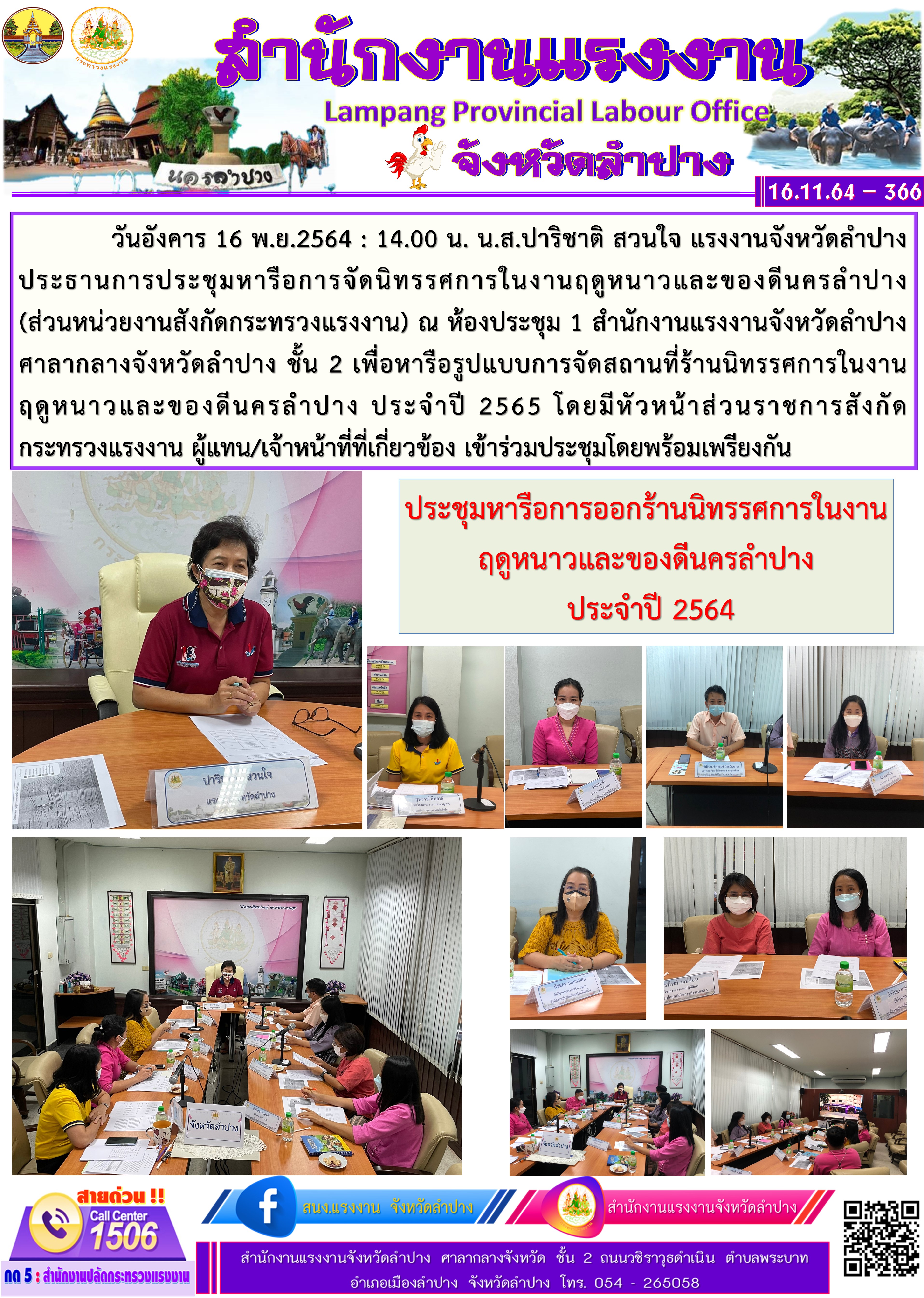ประชุมหารือการออกร้านนิทรรศการในงานฤดูหนาวและของดีนครลำปาง ประจำปี 2564