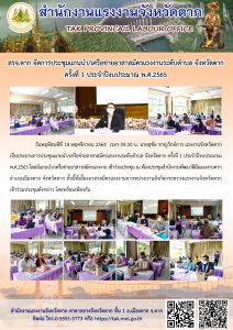 สรจ.ตาก จัดการประชุมแกนนำ/เครือข่ายอาสาสมัครแรงงานระดับตำบล จังหวัดตาก ครั้งที่ 1 ประจำปีงบประมาณ พ.ศ.2565