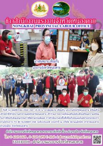 แรงงานจังหวัดหนองคาย พร้อมด้วยเจ้าหน้าที่สำนักงานสาธารณสุขจังหวัดหนองคาย เข้าร่วมการตรวจเยี่ยมเสริมพลังเพื่อเตรียมความพร้อมในการต้อนรับคณะอนุกรรมการติดตามประเมินผล การดำเนินงานลงพื้นที่เพื่อเก็บคะแนนในสถานประกอบการตามโครงการ TO BE NUMBER ONE ระดับประเทศ ประจำปี พ.ศ. 2565