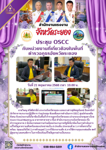 แรงงานจังหวัดระยอง เข้าร่วมประชุม OSCC กับหน่วยงานที่เกี่ยวข้องในพื้นที่ ตำรวจภูธรจังหวัดระยอง