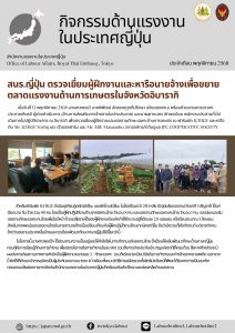 ตรวจเยี่ยมผู้ฝึกงานและหารือการขยายตลาดแรงงานกับนายจ้างญี่ปุ่น