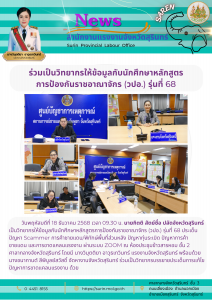 แรงงานจังหวัดสุรินทร์ ร่วมเป็นวิทยากรให้ข้อมูลกับนักศึกษาหลักสูตร การป้องกันราชอาณาจักร (วปอ.) รุ่นที่ 68