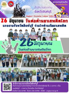 สำนักงานแรงงานจังหวัดสิงห์บุรี ร่วมรณรงค์ประชาสัมพันธ์เนื่องในวันต่อต้านยาเสพติดโลก (26 มิถุนายน)