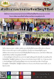 สำนักงานแรงงานจังหวัดบุรีรัมย์ เปิดโครงการตามงบประมาณรายจ่ายประจำปีจังหวัดบุรีรัมย์ ปีงบประมาณ พ.ศ.2564 โครงการพัฒนาและเสริมสร้างศักยภาพทรัพยากรมนุษย์ทุกช่วงวัย