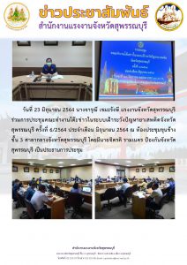แรงงานจังหวัดสุพรรณบุรี ร่วมการประชุมคณะทำงานโต๊ะข่าวในระบบเฝ้าระวังปัญหายาเสพติดจังหวัดสุพรรณบุรี ครั้งที่ 6/2564