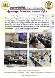 แรงงานจังหวัดพระนครศรีอยุธยา ร่วมประชุมคณะกรรมการโรคติดต่อจังหวัดพระนครศรีอยุธยา ครั้งที่ 26/2564