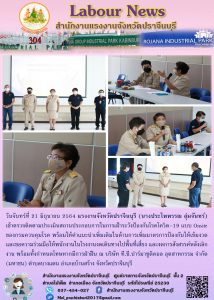 แรงงานจังหวัดปราจีนบุรี (นางประไพพรรณ ลุ่มจันทร์) เข้าตรวจติดตามประเมินสถานประกอบการในการเฝ้าระวังป้องกันโรคโควิด–19 แบบ Onsite