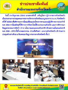 แรงงานจังหวัดตรังเข้าร่วมการประชุมคณะกรรมการบริหารงานจังหวัดแบบบูรณาการ (ก.บ.จ.) จังหวัดตรัง ครั้งที่ 3/2564