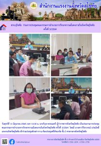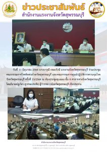 แรงงานจังหวัดสุพรรณบุรี ร่วมประชุมคณะกรรมการโรคติดต่อจังหวัดสุพรรณบุรี และคณะกรรมการศูนย์ปฏิบัติการควบคุมโรคจังหวัดสุพรรณบุรี ครั้งที่ 15/2564