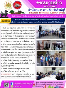 หน่วยงานสังกัดกระทรวงแรงงานจังหวัดสิงห์บุรี ตรวจเยี่ยมสถานประกอบการเพื่อรับทราบการดำเนินการตามมาตรการป้องกันการแพร่ระบาดของเชื้อไวรัสโควิด – 19