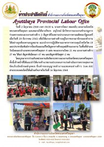 สำนักงานแรงงานจังหวัดพระนครศรีอยุธยาร่วมตรวจสอบแรงงานต่างด้าว 3 สัญชาติในสถานประกอบการตามมติคณะรัฐมนตรี เมื่อวันที่ 29 ธันวาคม 2563