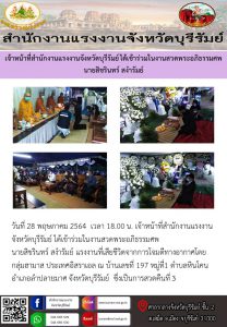 เจ้าหน้าที่สำนักงานแรงงานจังหวัดบุรีรัมย์ ได้เข้าร่วมในงานสวดพระอภิธรรมศพ นายสิขรินทร์ สงำรัมย์